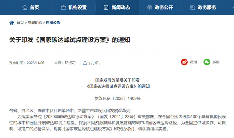 近日,國家發(fā)展改革委近日印發(fā)《國家碳達峰試點建設方案》(以下簡稱“方案”), 將在全國范圍內(nèi)選擇100個具有典型代表性的.....